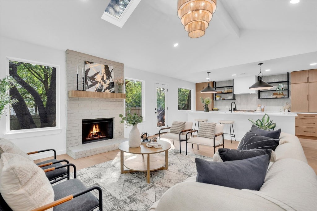 Welcome to your modern retreat in the heart of North Austin. This fully renovated single-story home pairs timeless comfort with fresh, designer style—offering light-filled spaces, vaulted ceilings, and a warm, inviting flow throughout. The open living area features a striking painted brick fireplace and rich wood-look flooring, seamlessly connecting to a chef-inspired kitchen. Here, you’ll find quartz countertops, an island, new cabinetry, open shelving, designer tile backsplash, and upgraded stainless steel appliances—perfect for both daily living and entertaining. The primary suite is a true escape, featuring a spa-like bathroom with dual vanities, a walk-in shower, a soaking tub, and modern black fixtures. Two additional bedrooms and a stylishly updated full bath offer versatility for family, guests, or a home office. Step outside to your own backyard oasis—complete with a shaded patio, lush lawn, and mature trees that provide both beauty and privacy. All of this is just minutes from Apple, Dell, IBM, Indeed, The Domain, and Austin’s vibrant tech corridor, with easy access to Mopac, Hwy 183, and Parmer Lane. Dining and shopping favorites—like H Mart, Garbo’s, First Watch, and the Q2 Stadium area—are right around the corner. *No survey*