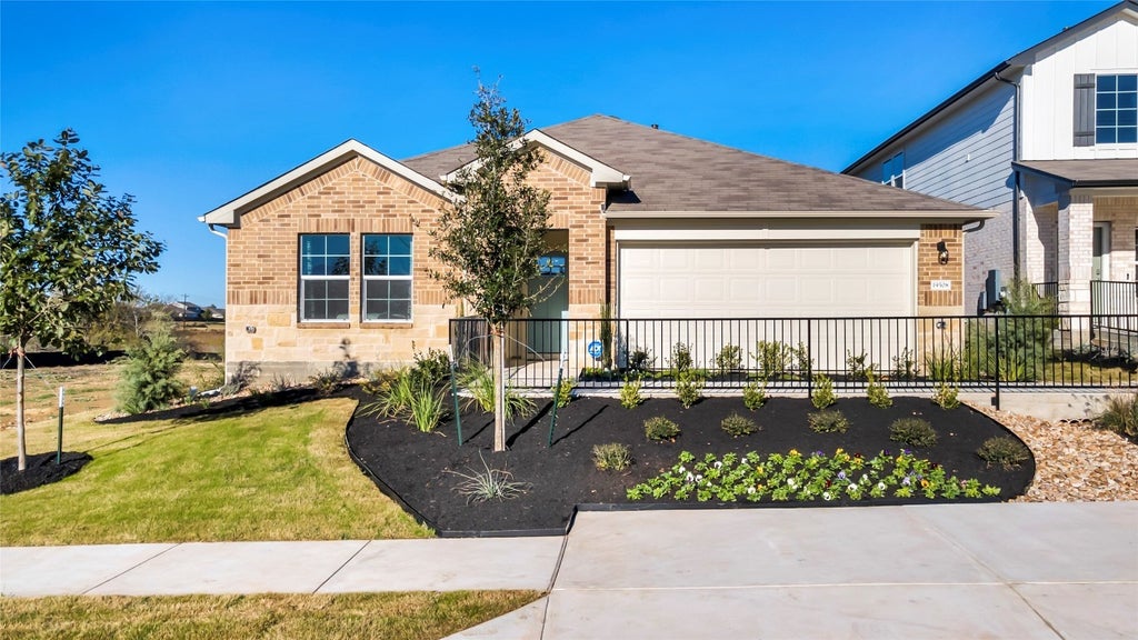 UNDER CONSTRUCTION - EST COMPLETION NOW!!!!!!!!!!!!!!!!!!!!! Photos are representative of plan and may vary as built. Step into the Irvine is a single-story home that offers 1,796 square feet of living space in our Carillon community in Manor, TX. The Irvine is the perfect place to call home with a two-car garage, four bedrooms and two bathrooms. When you enter the home, a long foyer will take you past the three spare bedrooms, the guest bathroom and utility room. As you enter into the heart of the home you are greeted with the open kitchen, breakfast nook and family room. The kitchen features a large kitchen island, perfect for entertaining, a walk-in pantry and stainless-steel appliances. The breakfast nook opens to the covered patio and backyard. The main bedroom, bedroom 1, is just off the family room at the back of the home offering privacy. Bedroom 1 features a large ensuite with a large walk in closet. This home comes included with a professionally designed landscape package and a full irrigation system as well as our Home is Connected base package that offers devices such as a Video Doorbell, Deako Smart Light Switch, a Honeywell Thermostat, and more.