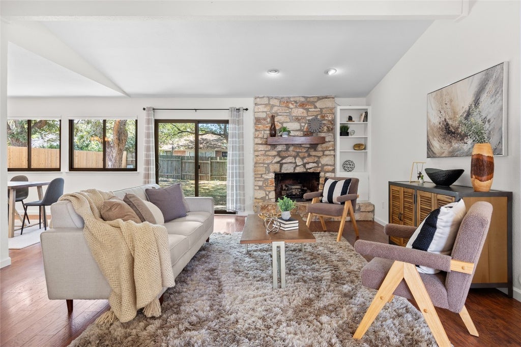 This isn’t just another house in the neighborhood; it’s the one that feels like home the moment you walk through the door. Set in a quiet pocket that feeds into coveted Westwood High, it offers the rare combination of charm, updates, and a backyard you’ll want to brag about. Inside, the living room immediately draws you in with wood floors, a vaulted ceiling, and a stone fireplace flanked by a built-in bookshelf, a space that feels both inviting and memorable. The updated sliding glass door brings in natural light and opens directly to the patio, blurring the line between cozy evenings inside and afternoons under the trees. The kitchen doesn’t just look good, it feels like the kind of place where people gather. Freshly painted cabinetry, new quartz countertops, new stainless steel appliances, and a classic tile backsplash make it shine, while the additional dining area nearby gives you room for everything from quick breakfasts to big dinners. The primary suite is tucked away and spacious, with a walk-in closet and ensuite bath that’s been refreshed with an updated vanity and mirror. Guest bedrooms are light-filled and comfortable, with both bathrooms carrying the same updates. But the real showstopper is out back. A massive oak canopy spreads across the huge yard, shading a patio that begs for weekend barbecues, long conversations, and plenty of room to play or relax. It’s the kind of outdoor space you’ll never want to leave. Just a few blocks from the home, you’ll find two neighborhood parks, with even more green spaces and local gems to explore throughout the surrounding community. Warm, inviting, and move-in ready, this home has personality, space, and updates that make it stand out in a neighborhood where homes don’t last long. Come see it; it might just be the one you’ve been waiting for.