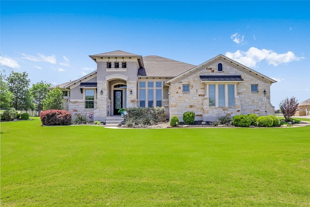 As you enter this exquisite NE facing home built in 2018 by Giddens Homes, this floor plan offers over 3000 sq. ft. featuring 4 spacious bedrooms with walk in closets 3 full bathrooms on a 1 acre lot, you will find upgrades galore. For Car Enthusiasts, this property has a 4-5 car workshop with epoxy floors and AC as well as LED Lighting and 220V power to accommodate those power tools and special equipment. The shop has spacious overhead storage! The 3 car attached garage has epoxy coated floors screens for air and privacy. The primary bedroom has floor to ceiling windows with custom curtains. This primary spa-like bathroom with extra large vanities for great storage. His and her extra large walk in closets with ample storage. The carpet in all bedrooms was replaced with upgraded padding in 2022.Tall ceilings add to the open floor plan of this gorgeous home, floor to ceiling windows for natural light in the great room. Large stone wood burning fireplace for those cozy cool nights! Gourmet kitchen with upgraded appliances includes Thermador induction cooktop and dishwasher, double Whirlpool ovens and Sharp built-in Microwave drawer. Granite counters for prepping. The chef style kitchen has an 12 ft island for entertaining the guests. The large walk in pantry has tons storage and a nice work center . Entering the foyer, a study/flex room as well as a utility room with storage. Beautiful hardwood flooring in main living areas. The central air was replaced in 2024. Extended covered back patio with power shades and Pergola covering the hot tub area for hrs of relaxation! Outdoor kitchen area boasts a grill, storage, and seating area, electric available for TV and outdoor fans. Separate Firepit are with bench seating. An Entertainers Dream! This home comes wired for security, Enjoy the Clearwater Ranch neighborhood that has an active HOA for events as well as several clubs. Come enjoy this beautiful oasis and make it your new home.