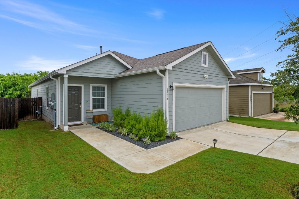 Price Improvement, below appraised amount, for quick sale! Pride of ownership shines throughout this roomy 4-bedroom, 2-bath home. SOLAR PANELS will assist in providing relatively low electric bills (can provide). Enjoy the open floor plan with an abundance of natural light and green-space backyard. You’ll love the professionally painted open concept kitchen/living area with tasteful quartz counters, tile backsplash, and matching appliances. Primary suite offers a view of the private backyard and the ensuite has a custom large walk-in shower. The walk-in closet is strategically located just steps from the shower with custom storage features and motion lighting. Secondary bedrooms are nicely sized. Greenwood community offers a modern pool and playground to enjoy. This home is conveniently located for an easy commute throughout the greater Austin area. Convenient to major roadways where you’ll find dining, shopping, employers, universities & hospitals.