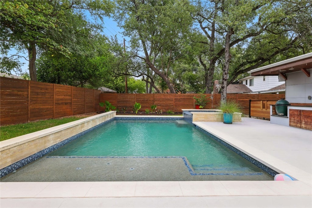 Modern Comfort Meets Mid-Century Charm in Westover Hills Welcome to your own private retreat in the heart of Westover Hills, a walkable, tree-lined neighborhood with no HOA, just steps from top-rated schools, coffee shops, restaurants, and the Steck Valley Greenbelt. Enjoy the best of Austin living with quick access to the Arboretum and Domain for shopping, dining, and entertainment. This fully remodeled, single-story 3-bed, 2-bath home blends timeless architecture with modern luxury across 2,170 sq ft of open living space. Soaring ceilings and custom metal beams anchor the living room, which flows effortlessly through oversized metal patio doors into a backyard designed for year-round entertaining. Unwind or host in a resort-style backyard featuring a heated pool & hot tub (built by Majestic Pools, 2015), covered patio with misting system, built-in outdoor kitchen, and full privacy fencing. A remote-controlled front gate (installed 2021) and expansive driveway with side parking area provide both privacy and convenience. Wildlife lovers will enjoy nightly visits from deer in the front yard. The spacious primary suite boasts a luxurious 8x8 spa-inspired bathroom with soaking tub and elegant finishes. Throughout the home, you’ll find thoughtful decorative touches, a Wolf gas stovetop, and top-tier upgrades like spray foam insulation (2024) and new HVAC system. The 2-car garage is finished with epoxy floors and built-in shelving, and features a MyQ smart garage system for app and remote access. Additional Features: Built in 1968 | Fully remodeled Lot size: 0.333 acres Wolf stovetop & upgraded kitchen Epoxy garage floor & custom shelving New AC and insulation (2024) Pool & hot tub (Majestic Pools, 2015) Remote front gate with keypad Wildlife visits nightly Cold plunge and Green Egg do not convey