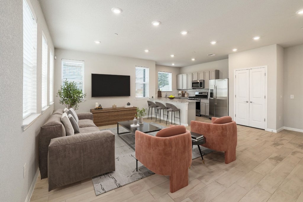 Formerly the model home for 4 years (built in 2019), so it is loaded with premium features throughout: upgraded wood tile flooring, backsplash, bathroom tile, etc. With its high ceilings and walls of windows, the space feels open, inviting, and full of light. Open to the great room, the kitchen showcases a breakfast bar, shaker style cabinets, granite countertops, and stainless steel appliances. The primary en suite features double vanity, walk-in glass shower, and walk-in closet.
