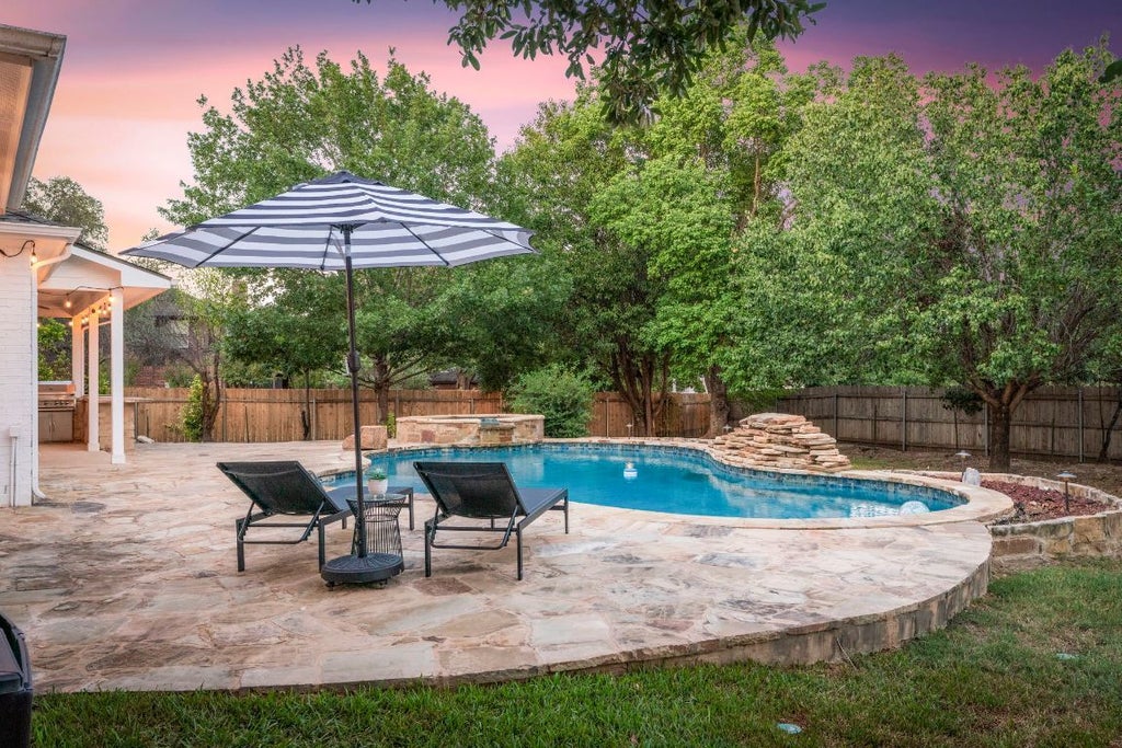 Welcome to The Barker Ranch Oasis—a rare corner-lot gem in the coveted Barker Ranch at Shady Hollow. Situated on .423 acres, this exquisitely updated 4-bedroom, 3.5-bath residence with a resort style pool, outdoor entertaining area, dedicated office and spacious upstairs game room blends modern elegance with resort-style living.