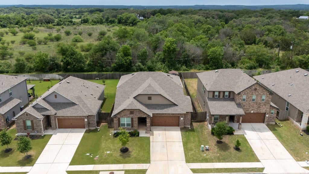 This beautifully designed 4-bedroom, 3-bathroom home offers 2,652 square feet of thoughtfully planned living space in the heart of Kyle, TX. The open-concept floor plan seamlessly connects the living, dining, and kitchen areas. At the heart of the home is a gourmet kitchen featuring quartz countertops, stainless steel appliances, a large center island with bar seating, walk-in pantry, and stunning cabinetry—ideal for everyday living and entertaining alike. Three bedrooms, including the gorgeous primary suite, are located downstairs. The primary retreat features a walk-in closet and an ensuite with dual vanities and a walk-in shower. Upstairs, you'll find a private loft, a full bath, a fourth bedroom, and a huge walk-in closet for extra storage—perfect for guests or a second living space. Other highlights include built in speakers downstairs, spacious laundry room, oversized 2.5-car garage, and a private backyard with storage shed that conveys with the home. NO REAR NEIGHBORS!