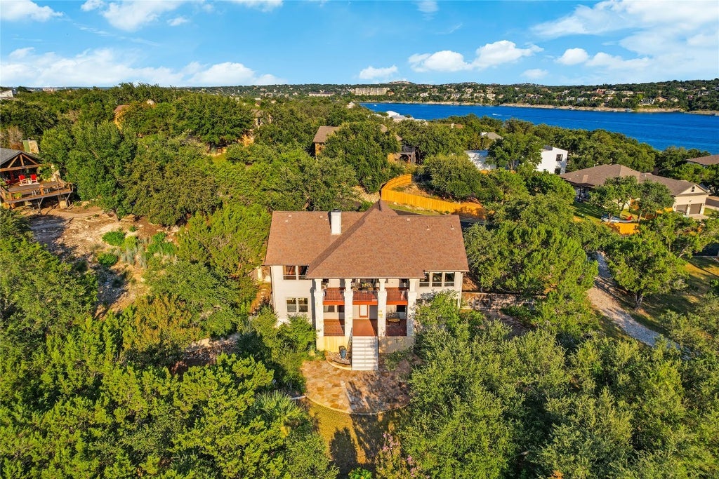 Breathtaking Panoramic Views of Lake Travis & the Hill Country!!! Experience the ultimate in Hill Country living, where sweeping, unobstructed views of Lake Travis meet elegant design and exceptional comfort. Step inside to a light-filled main living area, where the open-concept kitchen flows effortlessly into the dining and living spaces—perfect for both everyday living and entertaining. The chef’s kitchen showcases rich finishes, quality appliances, and a layout that keeps you connected to guests while taking in the stunning vistas. On the main level, the luxurious primary suite offers a spa-like retreat with a jetted soaking tub, dual vanities, and an expansive walk-in closet. A second ensuite bedroom—ideal as a guest room, private office, or library—adds versatility to the floorplan. The lower level extends the living space with a spacious second living area, three additional bedrooms, and a full bath—perfect for multi-generational living. Outdoor living is where this home truly shines. A sprawling upper deck invites you to savor morning coffee or evening sunsets while overlooking Lake Travis. The shaded lower patio provides the ideal space for alfresco dining and gatherings. Professionally landscaped grounds, private fencing, and beautiful stained concrete add to the home’s charm and curb appeal. Point Venture Amenities: Waterfront Park, 2 Boat Ramps, Playground, Pavilion, Basketball & Badminton Court, Fishing, Floating Restaurant, Golf Course, Pickle Ball, Gym, Library, Meeting Room, July 4th Parade & Festivities, Meal Get Togethers, Book Clubs, Parents Club, Live Music Venues, Trivia Nights, Bunko and so much more!!!