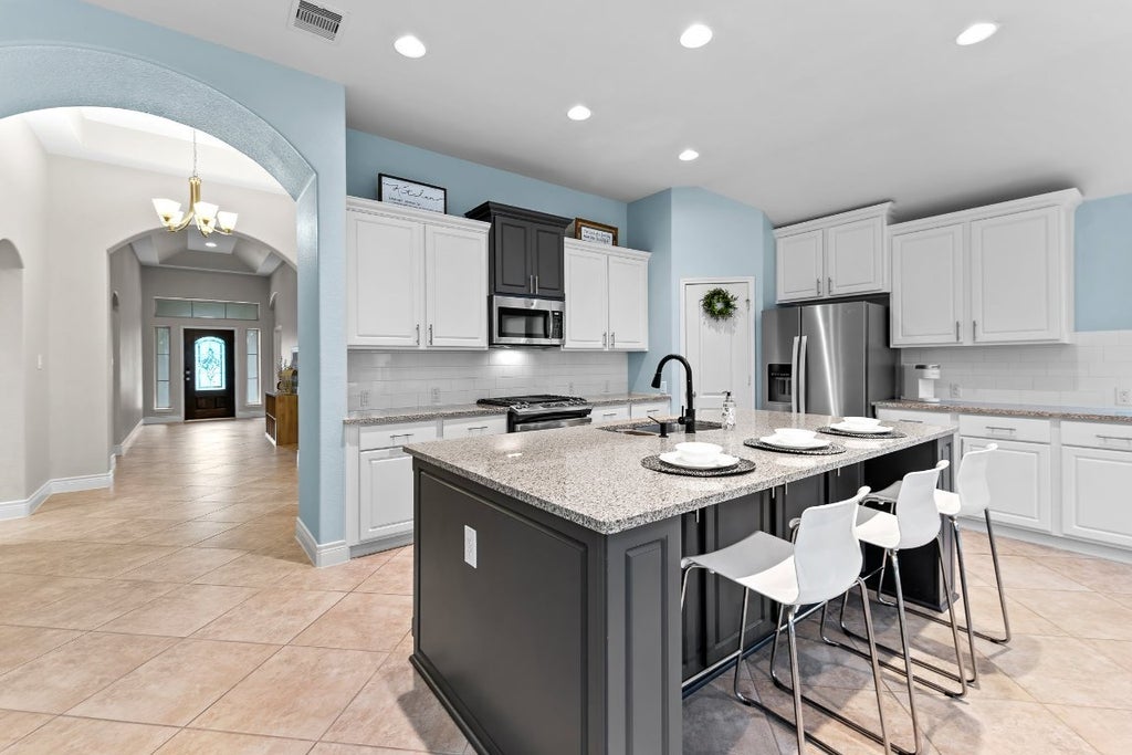 Experience Hill Country Living at Its Finest in Rancho Sienna Welcome to this stunning Perry Home nestled in the sought-after Rancho Sienna community—where natural beauty, award-winning amenities, and thoughtful design come together. This rare single-story residence boasts 4 spacious bedrooms, 3 full bathrooms, a dedicated office, and a 2-car garage, home feels bigger than 2,577 square feet of open, airy living space designed with comfort and elegance in mind. Step through the soaring foyer and into a light-filled open floor plan that flows effortlessly between the living, dining, and kitchen areas—perfect for entertaining or quiet evenings at home. The heart of the home is the oversized kitchen, complete with an L-shaped peninsula, expansive cabinetry, granite countertops, and a walk-in pantry tailor-made for the home chef and family gatherings. This home features a rare dual-primary suite layout, offering flexibility for multigenerational living, guest accommodations, or a luxurious home office retreat. Both suites are generously sized with walk-in closets and well-appointed en-suite bathrooms. Enjoy the best of indoor-outdoor living with an extended covered back patio that overlooks a private backyard—perfect for morning coffee or evening grilling. The lot lives larger than expected, creating a retreat-like feel right at home. Located in Rancho Sienna, a master-planned community known for its scenic trails, rolling hills, top-rated Liberty Hill ISD schools, and resort-style amenities including parks, pools, a fitness center, and dog parks—this home offers the lifestyle you’ve been dreaming of.