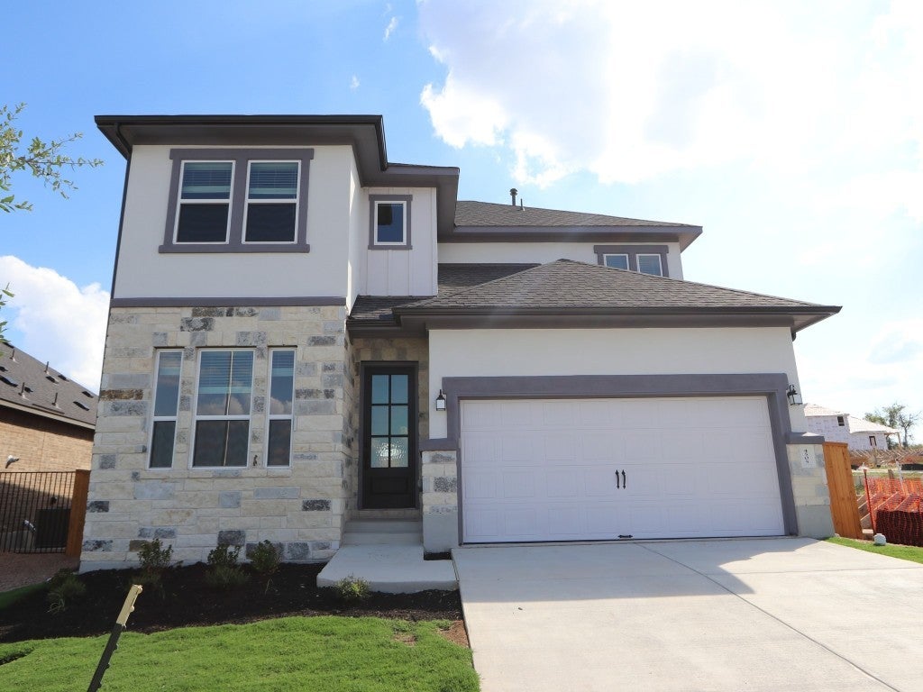 This 2 story floor plan includes 4 bedrooms, 2.5 bathrooms, a study, covered patio, the bay window option for the primary, and a generous sized 2nd story game room. Additional design options for this home include 8' exterior doors, 8' interior doors throughout main floor, 22' ceilings in both the entry and family room, wood look luxury vinyl plank flooring in main areas as well as the primary bedroom. The upgraded kitchen includes stainless steel appliances (ENERGY STAR certified), 30" 5 burner gas range, 42" cabinets, quartz counter tops, and a custom kitchen back-splash. The primary and secondary bathrooms also feature those upgraded white cabinets. Owners suite includes a mud-set shower, private water closet, and a generous sized owners closet. The vaulted ceilings in the entry and family room offer great natural light making this home a modern and luxurious beauty. This home is expected to be ready for move in by October 2025 so come by our model for more information!