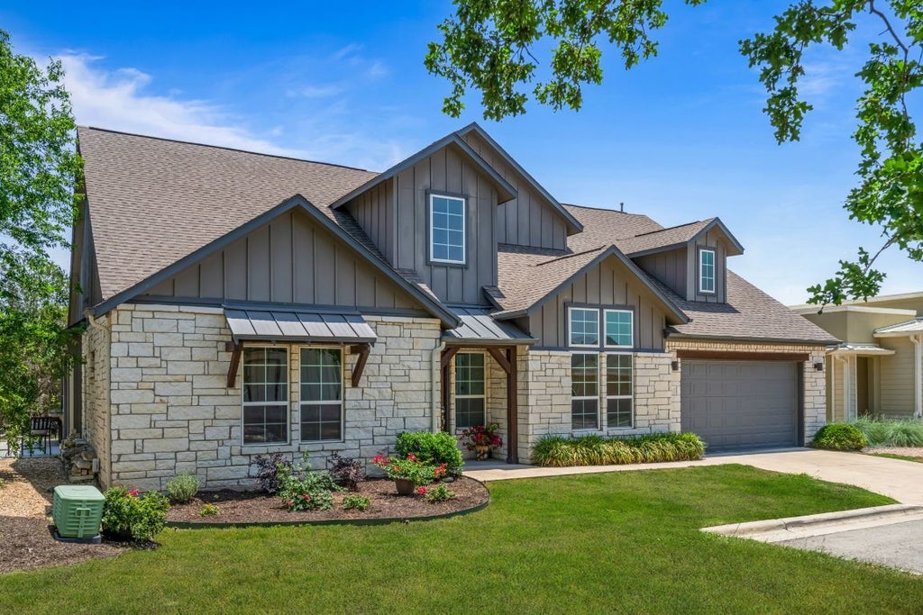 Enjoy a Lock and Leave lifestyle with HOA-covered lawn care, landscaping, garbage service, irrigation, pool, hot tub, pavilion, nature walking trail, and common area maintenance, located at walking distance to the award-winning Dripping Springs High School. This home offers 4 bedrooms,3 ½ bathrooms, and a dedicated office. It lives as a one-story home with the 4th bedroom with an ensuite and secondary living space on the second floor. The dine-in kitchen is a chef's delight with pendant lights over the island, granite countertops, tile backsplash, grey painted shaker-style cabinets, upgraded stainless steel appliances, and lots of privacy as this home is located at the end of the cul-de-sac surrounded by lush green space on 2 sides. The kitchen is open to the oversized family room and the dining room. The family room has lots of large windows to enjoy the outdoors. The office is conveniently located at the front of the house and has a closet and doors. Tucked at the back of the home for added privacy, the primary suite offers a serene retreat with a spa-like en-suite bathroom featuring a beautiful oversized walk-in shower. The expansive walk-in closet includes a built-in sauna, which is available to convey. Ample closet space and storage are found throughout the home, including a generously sized laundry room designed to impress. Outdoor is a covered patio with a delightful outdoor grill and seating space, perfect for hosting barbecues, making it ideal for family entertainment and social gatherings. Located in the heart of Dripping Springs, close to all essential amenities, this home is part of a welcoming, friendly community that features a shared pool and pavilion, perfect for summer enjoyment.