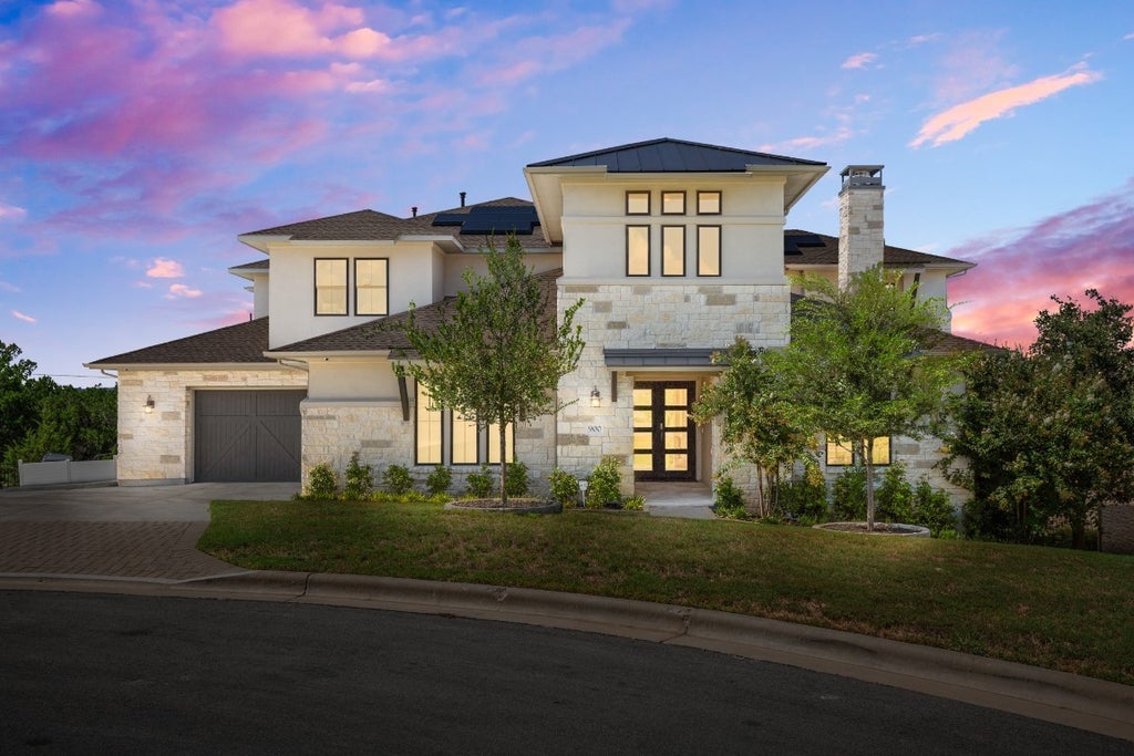 Better than new — with $233,000 in builder upgrades and $200,000 in post-purchase enhancements, this Rough Hollow beauty isn’t just move-in ready, it’s ready for you. Welcome to 900 Bristol Creek Bend: a 5,674 square foot dream, and the largest floorplan ever built by Westin Homes. Inside you’ll find 5 bedrooms, 5.5 bathrooms, a dedicated office, two interior living spaces, two dining areas, a media room, two outdoor living areas, a 3.5-car garage, and even an attached casita. The upgrades are what make this home unforgettable. The showstopper? A two-story custom primary closet with a secret retreat hidden behind a bookcase. (Yes, it’s as amazing as it sounds.) The primary suite itself is a sanctuary, complete with a spa-worthy bathroom featuring a soaking tub, dual vanities, and a massive walk-in shower. In the kitchen, a waterfall island and WOLF stainless appliances (including a 6-burner gas cooktop), plus a $20,000 custom Dacor refrigerator, set the stage for entertaining and culinary creations. The open living space is framed by vaulted ceilings, an electric fireplace, custom built-ins, and walls of windows that invite in natural light. Tucked behind the living area, the dedicated office features built-in bookcases and its own closet. The casita offers its own private entrance, and ensuite bath, perfect for guests. Upstairs, find three spacious en-suite bedrooms, a loft-style living area, and media room complete with 4K projector and screen. Out back, relax on your covered patio while enjoying Hill Country views, and from the upstairs windows sneak a peek at Lake Travis. The oversized lot offers privacy with only one side neighbor and no rear neighbors. Practical upgrades include: an extended driveway, 240V EV chargers, and a fully-owned Tesla solar system with two Powerwalls ($65,000 value), so you'll never be without power. Rough Hollow is known for its resort-style amenities, Yacht Club, and direct access to Lake Travis. POOL PERMITS/PLANS INCLUDED!