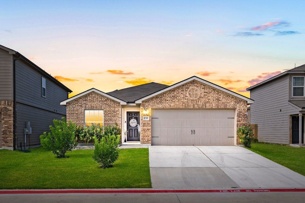 This beautifully maintained one-story home offers 3 bedrooms, 2 bathrooms, and a versatile front flex space that can serve as a formal dining room or additional living area. The open floor plan is enhanced by graceful archways, fresh paint, and brand-new luxury vinyl plank flooring throughout, creating a modern yet inviting feel. The primary suite features a spa-like bath and a newly customized walk-in closet designed in 2025. The kitchen and baths have been thoughtfully updated with new hardware and storage upgrades, while the laundry room offers added functionality with enhanced shelving. Energy efficiency shines with solar panels installed in 2022, a whole-house water softener and filter, and low utility costs. The smart-enabled garage door adds convenience, and blinds on all windows provide privacy and comfort. Step outside to a private backyard oasis with a patio, lush grass, mature crepe myrtles, and a fruit-producing peach tree, complemented by rose bushes and recent landscaping improvements including a reinforced fence and gravel side yard. Located on a quiet, low-traffic street just a short walk to the elementary school, park, pool, and splash pad, this home combines peace, charm, and practicality. The solar panels will be fully paid off by the seller, along with the washer, dryer, and refrigerator being included; making this a true move-in ready gem.