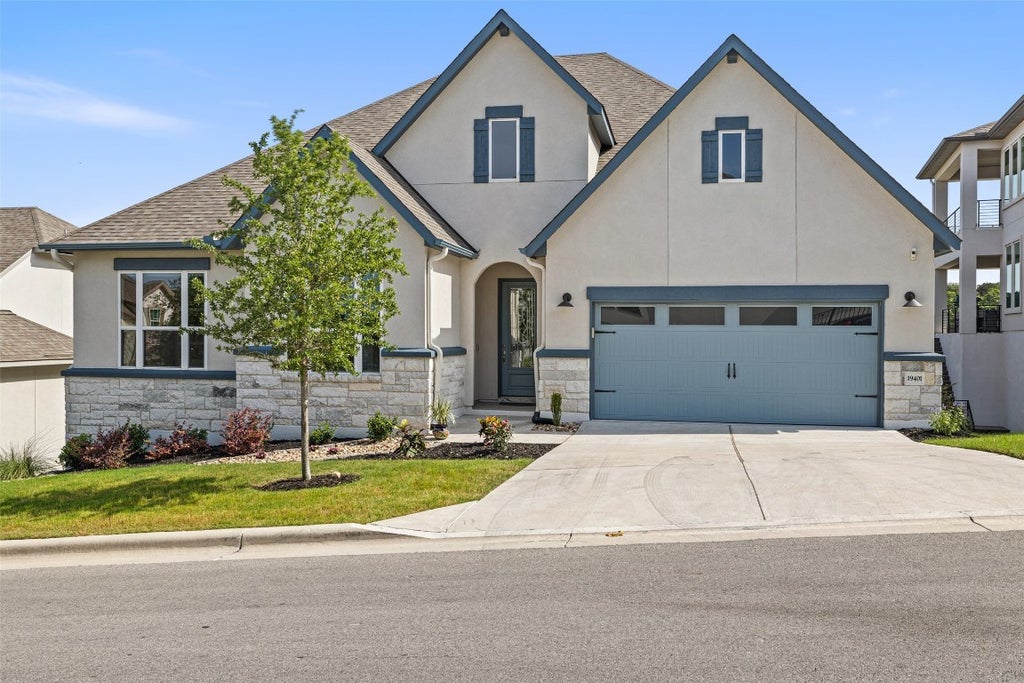 Bathed in natural light and perfectly positioned in the scenic Summit at Lake Travis this 2,616-square-foot home, completed two years ago, offers effortless living and breathtaking views. Pristine light hardwoods stretch throughout the open one-story layout, where picture windows and sliding glass doors frame the hill country surroundings. With its thoughtfully designed spaces and abundant light, this home makes everyday living feel both easy and comfortable. The heart of the home is an expansive great room designed for both relaxation and entertaining. A massive quartz island anchors the gourmet kitchen, offering seating for four and complemented by custom cabinetry, high-end stainless appliances, and a tidy hidden pantry. A gas fireplace adds warmth and ambiance to the living and dining areas, while a wall of windows opens to a large covered patio perfect for soaking in the serene vistas. A remote-controlled shade screen keeps the space comfortable. Off the patio are steps that lead to a flat, grassy yard—ideal for family play or planting a garden. One wing includes a children’s suite, so large it could easily be divided into two bedrooms complete with a private ensuite bath, oversized closet, and electric shades. An additional guest bedroom with an adjacent bathroom featuring a seamless glass shower adds more flexibility. A separate media room could be converted into a fourth bedroom, and a spacious utility room near a custom drop zone keeps life organized. At the back of the home, the primary suite is a peaceful retreat with large windows, electric shades, and a soothing palette. The primary bath offers a spa-like experience with beautiful finishes, smart layout, and a custom closet. Warm, cozy sunlight floods the living area and primary bedroom in the winter. In the summer, the roofline blocks the sun from the living areas and patio. This home is the definition of uncomplicated family living with close proximity to the elementary and middle schools.