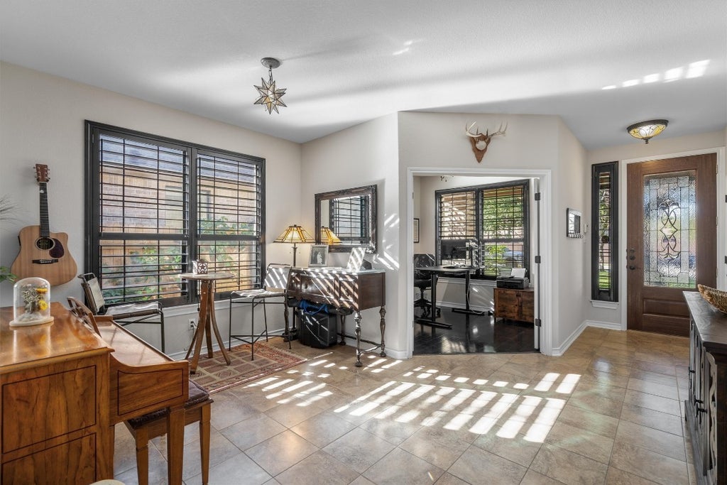 Move-In Ready Home in Silverado West! This well-kept property offers a landscaped front yard with mature trees and excellent curb appeal. Inside, hard flooring runs throughout the home for easy upkeep, while the open floor plan and high ceilings create a bright, comfortable flow. With 4 bedrooms and 2 bathrooms, the layout provides flexibility for everyday living. A front sitting area leads to a dedicated office—perfect for working from home. The kitchen features stainless steel appliances, and the primary suite includes a jet tub, walk-in shower, and dual walk-in closets. Additional upgrades include $3,500 in epoxy flooring. The backyard is designed for outdoor enjoyment with a covered patio ideal for grilling or relaxing. Neighborhood amenities include a pool, clubhouse, and parks, all just minutes from schools, shopping, and dining in Cedar Park.