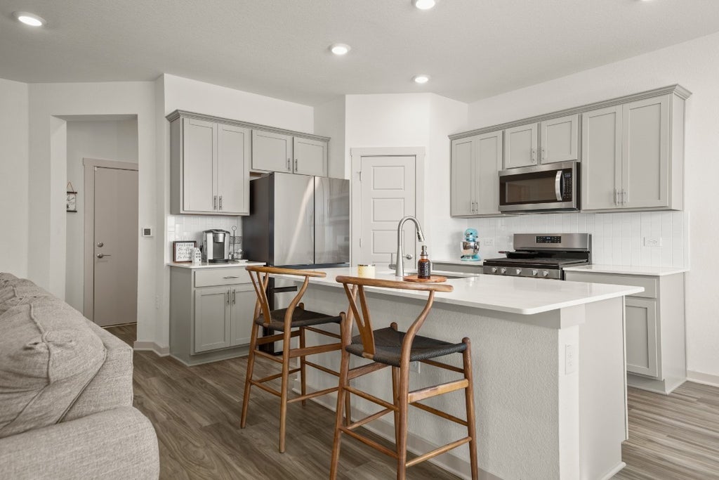 Live sleek and smart in Pflugerville’s serene Hillcrest community. Just 5 minutes to Tiger-Woods’ putt, putt, PopStroke, formerly known as the Pitch, and 20 minutes to Q2 Stadium, The Domain, and Downtown Austin. Come and enjoy the good life out in this quiet, sidewalk-lined community. Inside, enjoy tall ceilings, glowing natural light, and modern design touches throughout. No carpet here—easy-care wood-look luxury vinyl plank floors run wall to wall. The gorgeous island kitchen is designed for the home chef with quartz counters, stainless steel appliances, chic tile backsplash, a corner pantry, and island seating. Plus, it’s fully Smart Home wired—Alexa-ready from the front door to the thermostat. Thoughtful layout puts the primary suite at the back for peace and privacy, complete with a private ensuite dual vanity bath featuring a walk-in shower, generous closet, linen storage, and private toilet. Two spacious bedrooms and a full bath sit separately at the front offering space for family, guests, a home office, and more. Out back, unwind on the covered patio and enjoy outdoor recreation on the lush lawn, which is conveniently maintained by the owner. Don’t miss out on this chic modern rental – schedule your showing today! Pets negotiable, limited number, limited size and subject to landlord approval with a $350 deposit per pet, and a one-time non-refundable $350 pet fee per pet.