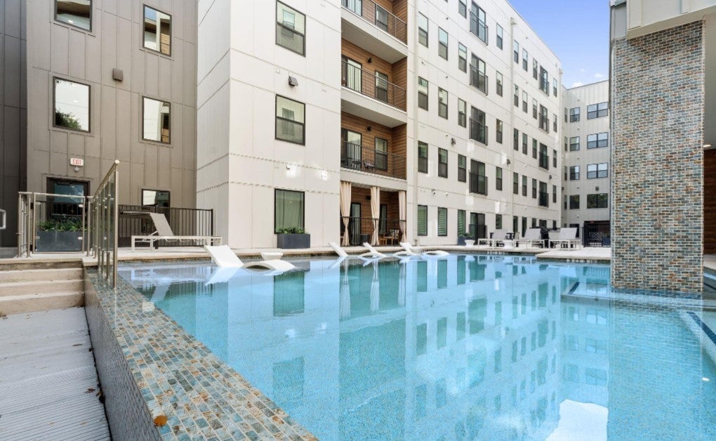 Stunning 1BD/1BA condo in Cascade Condominiums, ideally located at 25th & N Lamar—just 10 minutes from DKR Stadium. Features include laminate flooring, modern kitchen with quartz counters, herringbone backsplash, stainless appliances, and center island. Spacious bath with dual vanity and walk-in shower. Private balcony overlooks Shoal Creek. Community amenities: pool, rooftop terrace, fitness studio, resident lounge with work pods, parcel lockers. Includes 1 reserved garage parking space.