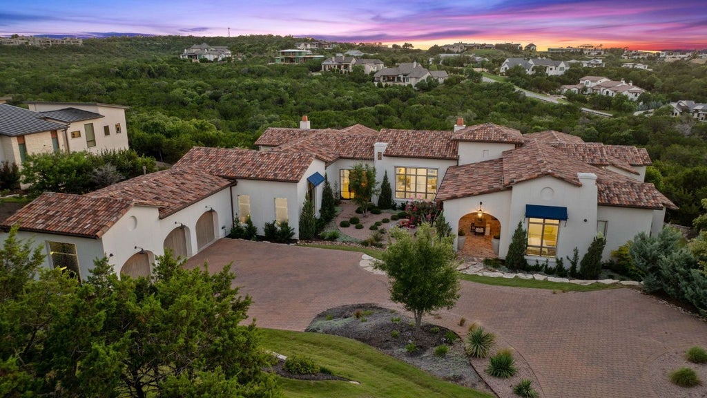 Welcome to 4716 Peralta Ln. Nestled on 2.34 acres in the prestigious gated enclave of Amarra, this exceptional single-story Heyl home offers timeless Santa Barbara-style architecture and luxurious, magazine-worthy design. A private courtyard entry surrounded by manicured landscaping sets the tone for this thoughtfully curated residence. Spanning nearly 5,000 square feet, every inch of this home reflects sophistication and attention to detail. Designed by renowned Mohon Interiors and featured in The Romance of Home, the interiors exude warmth and elegance with hardwood floors, soaring beamed ceilings, and natural light streaming through steel-framed windows. The chef’s kitchen is as functional as it is beautiful, boasting a massive island, top-of-the-line appliances, and butler’s pantry—perfect for both daily living and entertaining. The open-concept layout flows seamlessly from the kitchen to the spacious dining area and great room, anchored by a dramatic stone fireplace. Offering four generous bedrooms—each with its own private en-suite bath.Plus a separate office and a den with its own fireplace, this home provides multiple living spaces for comfort and connection. The primary suite is a retreat with pool access, panoramic views, and a spa-like bath featuring dual vanities, soaking tub, oversized walk-in shower, with his-and-hers closets. Outside, the resort-style patio includes multiple entertaining areas, a built-in grill, and a stunning pool and spa, all set against breathtaking views. Additional features include a spacious laundry room, guest half bath and bonus flex room conveniently located near the oversized 3-car garage. With an opportunity to purchase an adjacent 3-acre lot featuring a wet-weather creek, walking trails, and a park-like setting. A rare location, close to everything Austin has to offer. This home is an extraordinary blend of luxury, privacy, and natural beauty. Reach out for a private showing or visit 4716Peralta.com for more details.