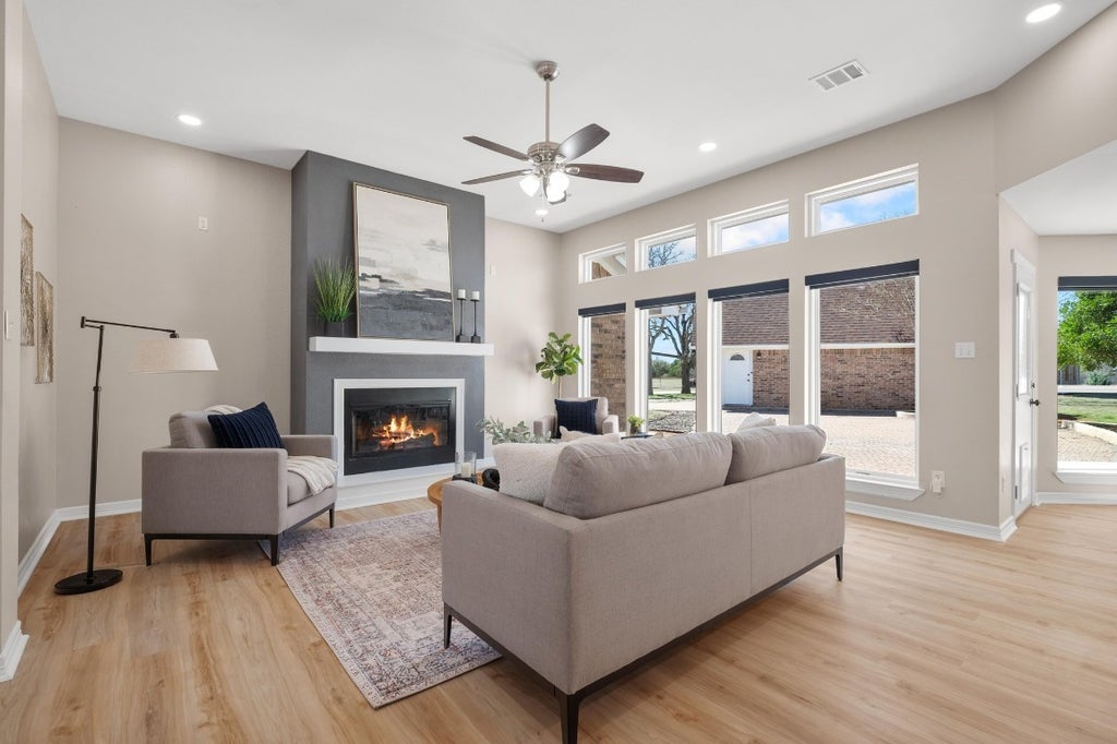 The primary residence is a beautifully designed single-story home spanning 2,488 sqft with 4 bedrooms and 2.5 bathrooms. The updated open-concept kitchen features quartz countertops, freshly painted cabinetry, a stylish backsplash, built-in appliances, a center island, and a breakfast bar. The family room boasts new flooring, fresh paint, and new windows with shade screens for added comfort. The primary suite is a private retreat with vaulted ceilings, dual walk-in closets, dual vanities, a garden tub, and a separate shower. Other highlights include a formal dining/secondary living area, newly installed 2024 roofs on all structures, and a paver patio for entertaining or relaxation.