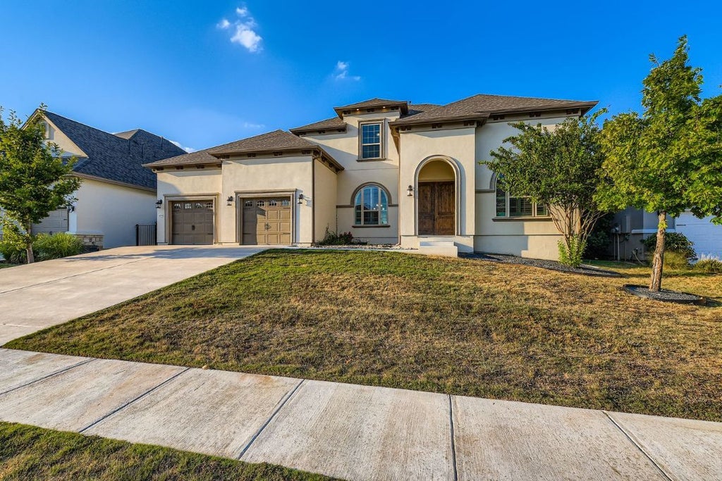Beautiful 2019 Toll Brothers home in the highly sought-after Travisso community. This 2-story residence offers 4 bedrooms, 4.5 bathrooms, and a 3-car garage across 3,726 square feet on a quarter-acre lot. The open-concept floor plan features a two-story great room with fireplace, a gourmet kitchen with custom cabinetry, oversized island, and stainless steel appliances, plus a dedicated office with French doors. The primary and guest suites are conveniently located on the main level, while the second floor includes a spacious bonus room and additional en-suite bedrooms. Upgrades include hardwood flooring, plantation shutters, epoxy-coated garage floor, water softener, reverse osmosis system, and porcelain tile on the entry and patio. The backyard offers a covered patio and professional landscaping. Travisso amenities include a clubhouse, fitness center, resort-style pool, sports courts, catch and release fishing pond, and hiking trails, all within Leander ISD. New Refrigerator and Washer/Dryer recently installed.