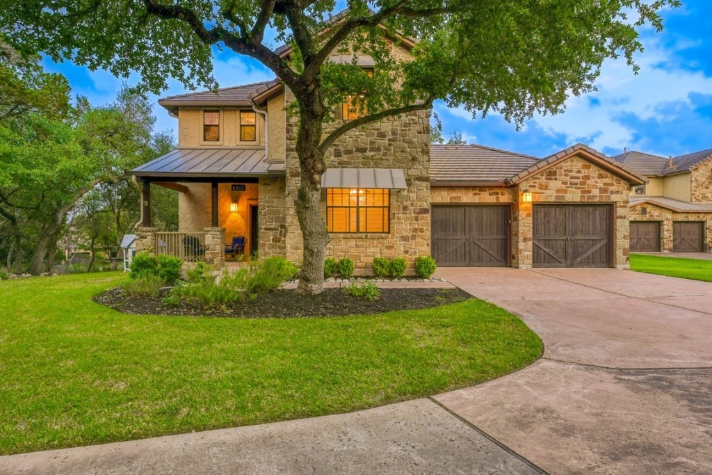 Welcome HOME to 6917 Trimaran Cove in the heart of The Hollows on Lake Travis, a gated lakeside luxury community. This 3 Bedroom/3 Bath home is at the end of a quiet cul-de-sac surrounded by a greenbelt with large oak trees and lush landscaping providing shade year-round. The thoughtfully designed home features a bright, open layout with high ceilings and large windows that bring in an abundance of natural light. The cozy stone fireplace is perfect for chilly central Texas nights. Beautifully updated with hardwood floors, Berber carpet and new paint throughout. The kitchen features a large island with an open dining area, perfect for gathering and entertaining. Enjoy the front porch or two private outdoor retreats: a covered main-level patio just off the living room—perfect for relaxing in the shade—and a private balcony off the upstairs primary suite. There is one bedroom/bath downstairs and the primary and second bedroom/bath upstairs along with the Washer/Dryer. The double car garage features an EV hook up. The Hollows community is located along the northshore of Lake Travis between Jonestown and Lago Vista and approximately 28 miles from downtown Austin! Just minutes to major shopping and restaurants! Known for sweeping lake views and luxurious resort style amenities, this upscale neighborhood offers miles of hiking trails, lake and marina access, a fitness center, private resort-style pools, pickleball, a seasonal restaurant and a hilltop smokehouse. Just steps away is the Northshore Marina which is one of the finest marinas offered on Lake Travis! Lago Vista is a gateway community to the Texas Hill Country. Come and experience the beauty of the rolling hills, beautiful lakes, world-class wineries and all of the small surrounding towns and their charm. Whether you are looking for a lakeside retreat or a home to call your own - this place is it because where you live matters!
