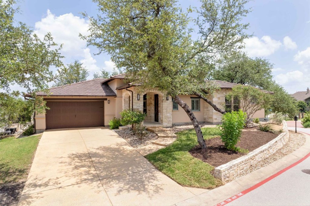 Luxury Living Meets Tranquility in Canyonside at Falconhead West Welcome to 5200 Patagonia Pass, an exquisite free-standing luxury condo nestled in the highly sought-after Canyonside at Falconhead West. This rare lot offers unparalleled privacy, no neighbor on one side, a long driveway, and serene greenbelt views. Inside, you'll find over $50,000 in high-end upgrades, from soaring 8-foot interior doors with detailed trim to rich hardwood flooring that flows through the living, dining, and hallways. The chef’s kitchen is a masterpiece, featuring 42” upper cabinets with framed end panels, oversized crown molding, a farmhouse apron sink, a full-tile backsplash extending to the ceiling, and custom enhancements such as soft-close drawers, slide-out shelves, and a wine bottle & glass rack. The primary suite is a true retreat with dramatic crown molding, under-cabinet lighting, a spa-style frameless glass shower, and contemporary granite-topped vanities. A built-in study with upper cabinets and bookshelves offers a dedicated workspace. Step outside to your private fenced courtyard with ornamental steel fencing, stone columns, and a gated entry. The rear covered patio, complete with a ceiling fan and built-in grill with granite counters, is perfect for entertaining and you are mere steps away from the greenbelt walking trails. All of this comes with the benefits of one of the lowest tax rates in Travis County and access to the highly acclaimed Lake Travis ISD. HOA fees include exterior insurance, exterior structure maintenance, and landscaping. Don't miss this rare opportunity to own a premier home in an unbeatable location!