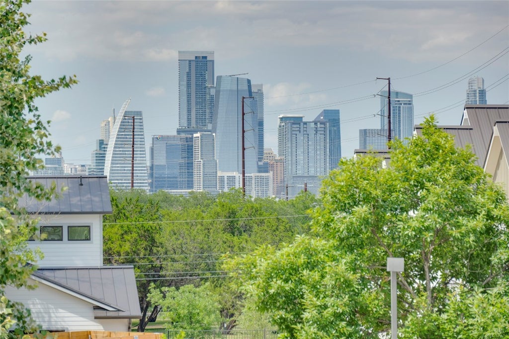 This condo is perfectly located as a corner unit with a private entrance near the stairwell for quick access when entering/exiting and plenty of space and privacy from surrounding unit entrances. As soon as you step inside, you will immediately be be taken in by the gorgeous downtown Austin views visible through the large glass doors leading to the balcony overlooking the courtyard. The unit includes a large 25’ x 14’ first-floor, larger than standard garage with space for parking and storage. Interior features include one bedroom with a walk-in closet, one full bathroom with granite countertops, and a flexible bonus room that can be used as an office, den, workout room, or second living space. The family room and covered balcony offer direct views of the city skyline - unique only to units positioned on this side of the building. Inside, the living and dining areas have vinyl "wood" flooring, and the kitchen is equipped with stainless steel appliances, gas cooking, granite countertops, and a breakfast bar. There are ample cabinets for storage and a built in desk/workspace directly off of the kitchen. There is a laundry room through the bathroom with stackable washer and dryer that convey. Recent updates include HVAC servicing, oven and refrigerator maintenance, and a renovated shower. The community offers a pool, clubhouse, two dog parks, an amphitheater, green-space, and a community garden. Located in a central area with quick access to downtown Austin.