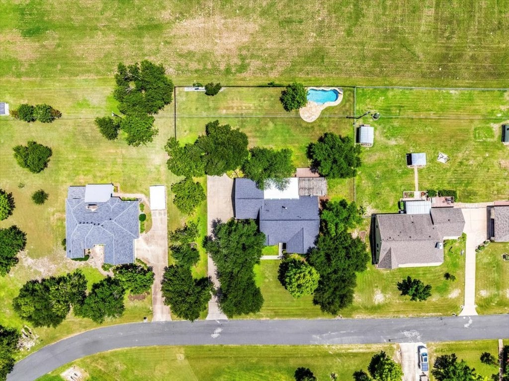 Welcome to your enchanting rural retreat nestled on an expansive 0.76-acre lot in Hutto. This serene property showcases stunning curb appeal and a peaceful living environment. It features a spacious 3-car garage, a gorgeous in-ground saline/saltwater pool, and the natural beauty of 8 mature oak trees and 3 stately pecans. Inside, the 4-bedroom, 2-bathroom home boasts a dedicated office, a generous living room, a gourmet kitchen, and an expansive sunroom perfect for both living and dining with a backdrop of the serene backyard oasis. The kitchen is a true showstopper featuring granite countertops, a center island, stainless steel appliances, and abundant cabinetry with elegant glass-front uppers and accent lighting. The primary suite is the perfect owner’s getaway, surrounded by windows that offer serene views, and includes a luxurious ensuite bathroom with a sizable dual vanity and a walk-in shower with dual showerheads. Embrace country living with a spacious deck and pergola that that beckons for al fresco dining and relaxation. Enjoy uninterrupted views of the surrounding rural landscape and a pool that invites you to entertain and create cherished memories with loved ones this the summer. Recent updates include a new HVAC system (both inside and outside units) installed in October 2024, a new roof added in August 2019, a convenient 50 AMP RV hookup, and a 9-zone sprinkler system that covers the entire property.