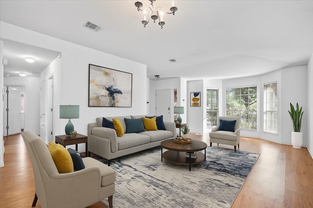 Situated in the highly desirable Sendera neighborhood, this charming single-story home features a bright open floor plan with a spacious family room and cozy fireplace. The interior has been freshly painted and includes tile and laminate flooring throughout, offering an allergy-friendly, carpet-free environment. The primary suite boasts a walk-in closet, double vanity, and separate shower, while ceiling fans in every bedroom provide added comfort. A covered back patio with its own ceiling fan opens to a private, fenced backyard, perfect for relaxing or entertaining. Additional highlights include space for bicycle storage and a separate utility room. The kitchen comes equipped with a free-standing range/oven, microwave, and dishwasher. The Sendera neighborhood offers a community pool and playground, along with access to Google Fiber. Conveniently located within walking distance of Bowie High School and just minutes from MoPac, shopping, dining, Alamo Drafthouse, and the Violet Crown Trail, this home combines comfort with accessibility. Don’t miss the opportunity to lease this beautiful home!