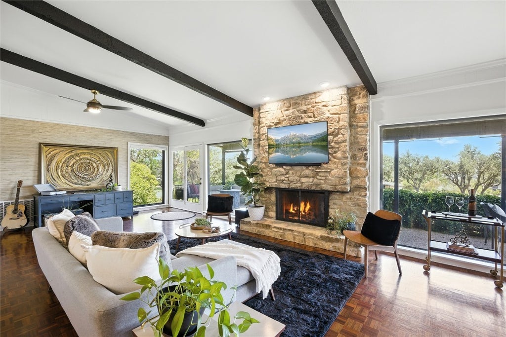 Mid-Century Modern Golf Course Gem | Now Offered at $845,000 Discover 402 Seawind Drive, a striking mid-century modern retreat perched above the 10th hole of Live Oak Golf Course in the heart of Old Lakeway. This architecturally distinct home captures the essence of Hill Country modernism, blending clean lines, designer upgrades, and effortless indoor-outdoor living. Step inside to find three spacious bedroom suites, each with private en-suite baths—ideal for multigenerational living, guest space, or home offices. The open-concept main level features bamboo and wood-look tile flooring, a sleek custom kitchen with a leather-look tile backsplash, upgraded hardware, under-cabinet lighting, and a motion-sensor vent hood that vents directly outdoors. Upgrades include: Lennox variable-speed HVAC with UV air purification (upstairs) - Goodman condenser (downstairs) - Andersen 100 Series Low-E windows throughout - RainSoft soft-water and reverse osmosis system (lifetime warranty) - Renovated bathrooms with designer fixtures and finishes - New exterior siding and fresh paint. The tiered layout flows seamlessly to a private backyard overlooking the fairway, perfect for al fresco dining, morning coffee, or starlit evenings. Located in a Dark Sky Community, you’ll enjoy crystal-clear night skies and true Hill Country serenity. Bonus: The Lakeway MUD sewer connection fee has already been paid. Optional membership at The Hills Country Club offers access to world-class golf, tennis, fitness, and social amenities just minutes away. This rare mid-century modern beauty blends location, lifestyle, and architectural character—all for under $850K.