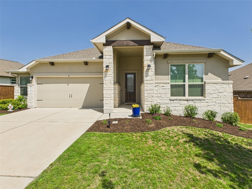 Seller Concession Available call for more information. Beautiful "western facing" Scott Felder Georgetown plan in Kyle's premier neighborhood of Cypress Forest. Home has 8 ft doors, 10 ft ceilings and a large covered patio complete with a gas pipe outlet for you BBQ. This is a popular 3 bedroom, 2 bathroom with flex space plan with 2,220 sf of living space. This home has a great open floor plan that connects the living, dining and kitchen areas for an inviting entertaining atmosphere. The property includes a 2.5 car garage convenient for extra storage space. Cypress Forest offers several amenities such as a community pool, park, fishing pond and trail. This community is in a great location within the growing city of Kyle and offers a low tax rate. Make sure you come see this property soon, you won't be disappointed.