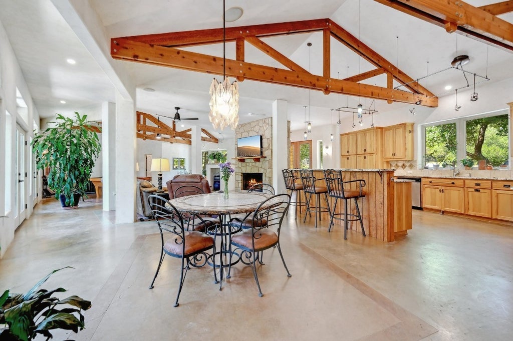 Don’t miss this opportunity to own a custom-built estate on 10 private, gated acres in Wimberley. This beautifully crafted home welcomes you with mahogany French doors and a custom stucco finish inside and out. The open floor plan features soaring ceilings with exposed wood beams, a spacious living area, game room, dining area, and a versatile extra room that can serve as an office or formal dining. The kitchen boasts granite counters, 42” Texas pecan cabinets, and ample workspace, while the 52” fireplace adds charm to the family room. The primary suite offers sunrise views, an ensuite bath, walk-in closet, and a no-step walk-in shower. Casement windows throughout, paired with transoms in the den and bedrooms, frame surrounding trees and natural landscape while inviting in fresh Hill Country breezes, especially when combined with 2 whole-house attic fans. Built-in bookshelves and a laundry room with extra storage add to the home’s function. Outdoor living is equally impressive, with a covered patio overlooking the in-ground pool, perfect for relaxing or entertaining. ICF construction provides 11” thick concrete and rebar-filled walls for excellent insulation and energy efficiency(https://www.icfspecialist.com/). Additional features include a metal roof, 2 on-demand water heaters, a backup generator, and a rainwater harvesting system with triple filtration and UV purification. The 20x40 garage/workshop with electricity and commercial-grade shelving offers flexibility, alongside a separate storage shed. The land features tiered rock ledges, 3+ acres of open pasture for horses, a wooded area rich with wildlife, and a historic stone wall. Large oaks and elms provide shade, with much of the cedar cleared. Tucked away for privacy yet close to wineries, distilleries, restaurants, and Wimberley Market Days, this one-of-a-kind property is ideally located between Austin, San Antonio, and Fredericksburg, offering seclusion and access to the best of the Texas Hill Country.