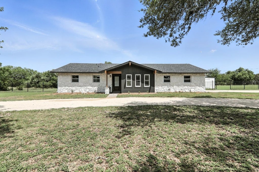This fully renovated ranch-style home in Liberty Hill, Texas offers the perfect mix of modern upgrades and Hill Country charm—all on 3.65 acres with low property taxes. Priced $100,000 below the original asking price, this move-in ready home is a rare find. Inside, the 3-bedroom, 2-bath layout has been completely transformed. The kitchen features soft-close cabinetry, granite countertops, coordinating backsplash, and brand-new stainless steel appliances. Fresh paint and wood-look tile flooring extend throughout the home, while bathrooms showcase floor-to-ceiling tile for a luxury feel. The primary suite includes a spa-style walk-in shower with a sliding glass door, and upgraded LED lighting throughout the home adds style and energy efficiency. The property is designed with flexibility for work, play, and homesteading. A finished-out office/game room cabin provides extra space for remote work or hobbies. The party barn includes outlets, misters, and ambient lighting, making it perfect for entertaining year-round. A large workshop with new wiring, bright LED shop lighting, and dedicated lawn care storage supports any project or hobby. The epoxy-coated garage floor adds durability and a polished finish. With 3.65 acres of usable land, you’ll have plenty of room for gardening, chickens, goats, or any homesteading dreams. This property offers a true Hill Country lifestyle upgrade—just minutes from the conveniences of Liberty Hill.
