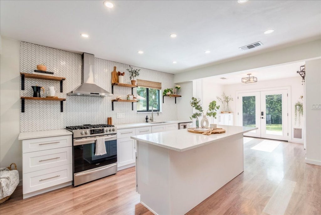 Modern farmhouse on nearly half an acre in Buda with thoughtful updates and Hill Country charm. Fully renovated in 2021, this 4-bedroom, 2.5-bath home features an open layout and major system upgrades, including new windows, siding, roof, HVAC, water filtration, and septic systems. The spacious kitchen includes quartz countertops, stainless steel appliances, an oversized island, and custom shelving. The main level offers a primary bedroom with an ensuite bath, plus a second bedroom that also functions well as a private office—ideal for working from home. Upstairs, two additional bedrooms provide flexible space for family, guests, or hobbies. Set on a level 0.47-acre lot with mature oak trees and no HOA, the property offers ample room to entertain, garden, or relax. Enjoy quiet mornings on the front porch or unwind in the large backyard. Zoned to Carpenter Hill Elementary, Dahlstrom Middle, and Johnson High School, and located just 22 minutes from downtown Austin, this home blends small-town serenity with city convenience. Move-in ready with all the big-ticket updates complete—schedule your showing today.