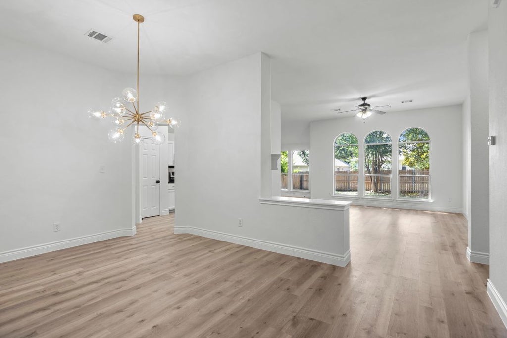Fantastic opportunity in Vista Oaks, updated from head-to-toe. Easy-flowing four bedroom home with fresh paint, fixtures, no carpet. Updated kitchen AND bathrooms. Fourth bedroom could be study/flex space, TWO dining areas. LARGE laundry room with extra storage. Nice back patio area. Fully fenced back yard. Neighborhood pool and amenity center. Only 2.2 miles to HEB and Walmart Supercenter. Easy access proximity to Ronald Reagan Blvd., 183A, and IH-35. Move right in!